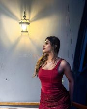 Tamil Glamour Actress Yashika Aannand in a Deep Red Corset Bodysuit with a Red Sequined Mini Skirt Pictures 06