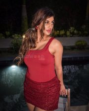 Tamil Glamour Actress Yashika Aannand in a Deep Red Corset Bodysuit with a Red Sequined Mini Skirt Pictures 02