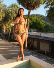 Sensuous Kate Sharma in a Two Piece Yellow High Waisted Bikini with an Orange and Green Tropical Floral Print Photos 08