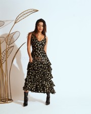 You are viewing an image of Tollywood Actress Nabha Natesh in a Sheer Golden Saree with Cleavage Revealing Blouse Photos 08 in KollywoodZone.com Photo Gallery