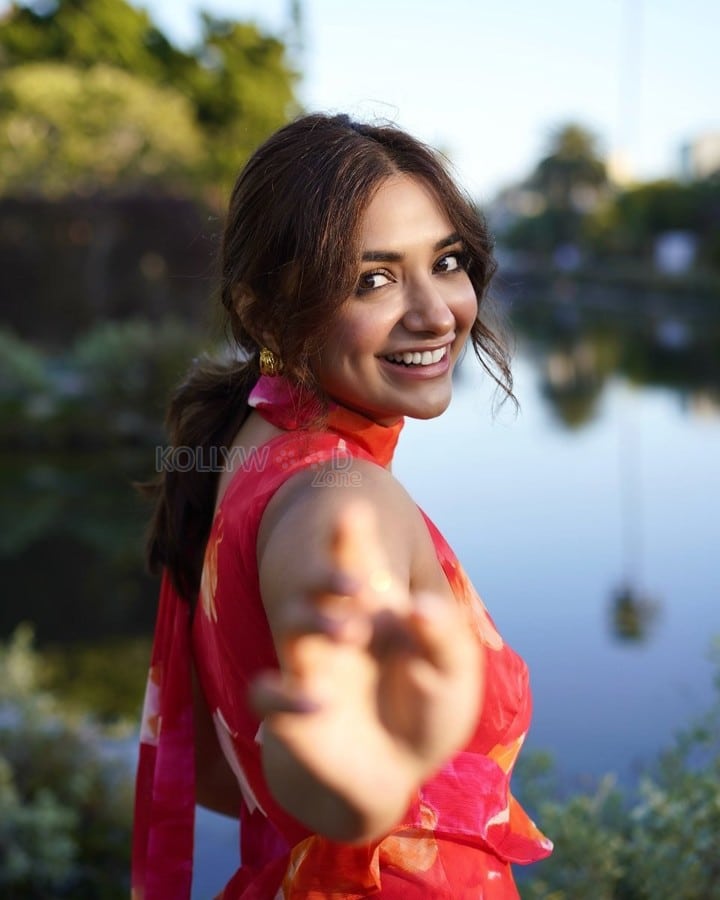 You are viewing an image of Vibrant Beauty Jiya Shankar in a Red Floral Printed Maxi Dress Photos 02 in KollywoodZone.com Photo Gallery
