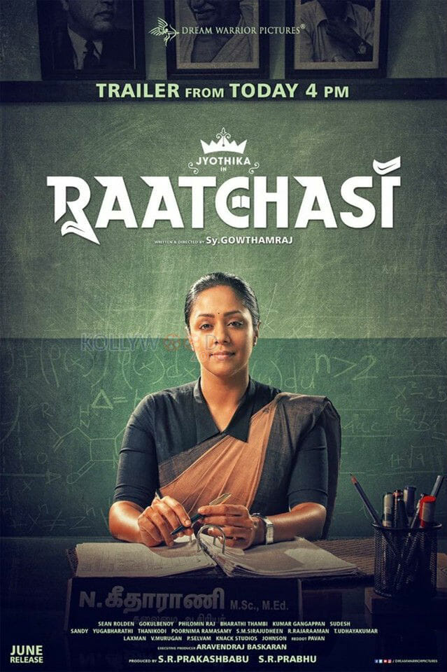 Geetha Rani (Jyotika), is a newly appointed strong headed headmistress of a government school down South of Tamil Nadu. She journeys to the school with a kid seeking admission. The staff in the school are not aware that she is the newly appointed headmistress of the school and they disrespect her casually, and then she gets the mass introduction, something we are used to with heroes of Tamil cinema. Once they know who she is, she makes a strong statement on why she is here and what she intends to do. Even when she sees the awful state of the school, the lazy psychology of teachers, and students, who are not concerned about their studies, not even for one second she assumes the task of overturning these issues as mission impossible. She begins by implementing strict rules and subjecting people that do not abide the rule to strong actions. Naturally, she earns the anger of the teachers as well as the students of the school. As a result she earns the nick name of ‘raatchasi.’ But slowly some of the people come to terms with her rules and they begin to embrace her system of belief.